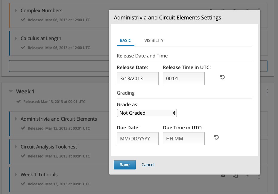 Construisez et publiez les sections à vos étudiants progressivement. Vous n'avez pas l'obligation de tout préparer d'un coup.